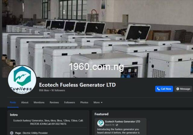 Clinton Ugoh, a Lagos-based man, has recounted how a syndicate of fraudsters running the many Ecotech Fuelless Generator pages on Facebook defrauded him of N60,000.