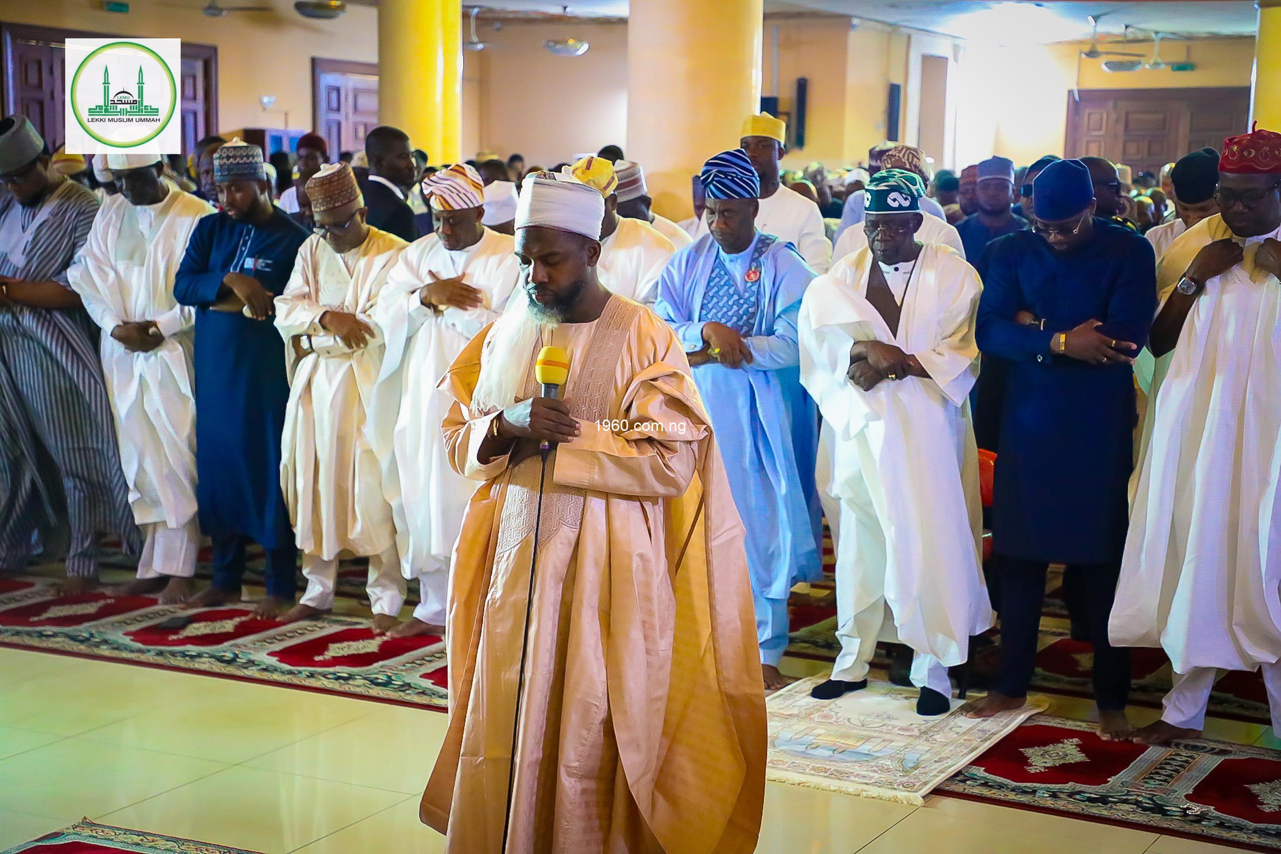 President Bola Tinubu observed the Jumat prayer at the Lekki Central Mosque in Lagos on Friday afternoon alongside the Muslim faithful.