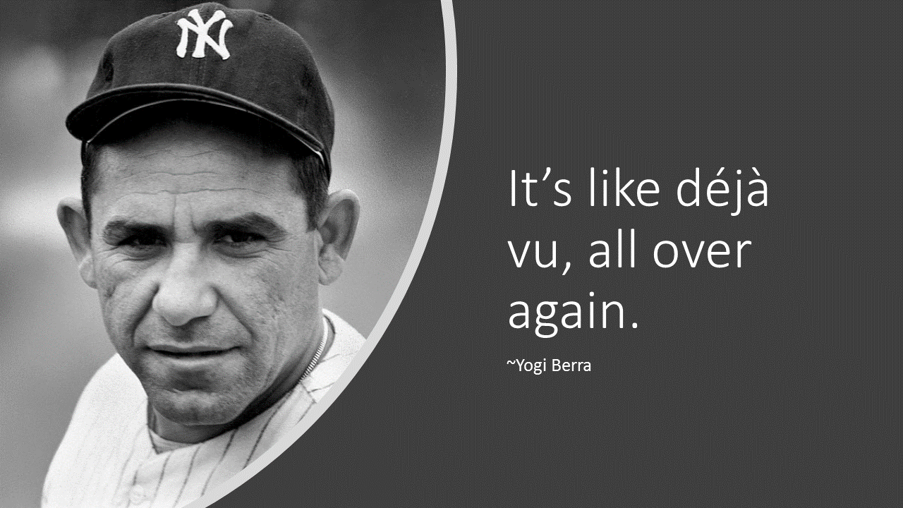 This phrase was coined by Yogi Berra, a famous American baseball player who is remembered for many iconic phrases now known as “Yogi-isms.”
