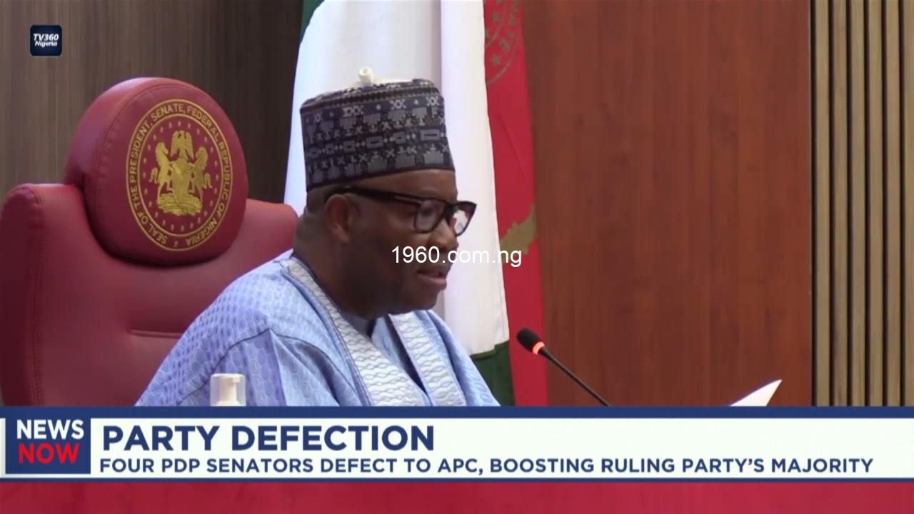 The Senate on Wednesday formally received four lawmakers who have defected from the opposition Peoples Democratic Party (PDP) to the ruling All Progressives Congress (APC), further strengthening the party’s hold on the upper chamber.