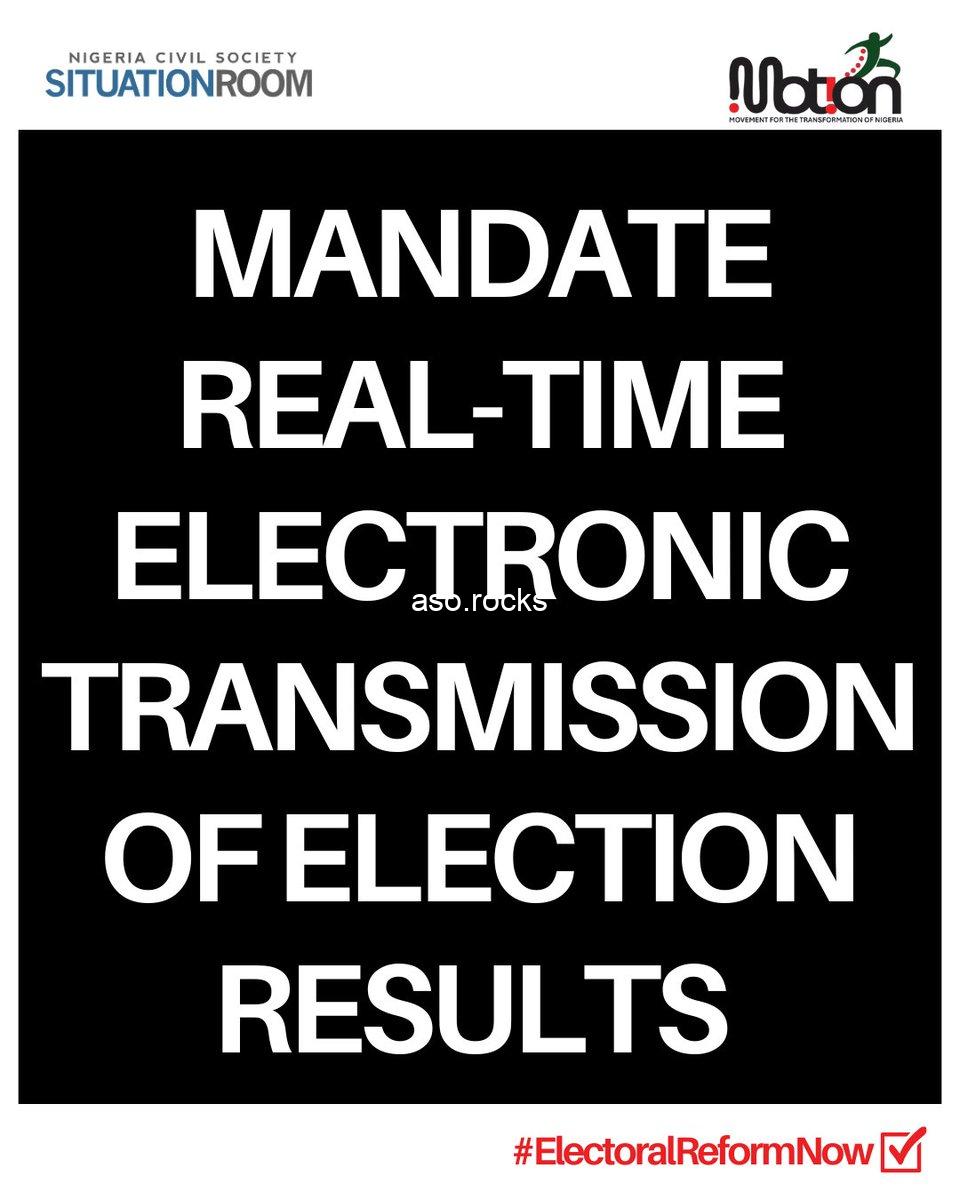 Nigerians, through the various civil groups, the Nigeria Labour Congress, NLC, key opposition parties and leaders, social media influencers and mainstream media, have made it abundantly clear that real-time transmission of results is non-negotiable. We call on all National Assembly members to be true representatives of Nigerians, eschew selfish interest and ensure that an amendment that meets the people’s will is forwarded to the President for assent.