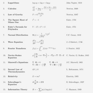These equations have shaped our understanding of the universe, technology, and the natural world. Each represents a milestone in human intellectual achievement.