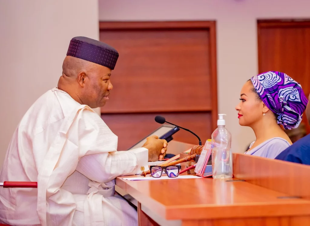She made the allegation in an interview with BBC, adding that Akpabio would “squeeze my hands in a very suggestive way”.