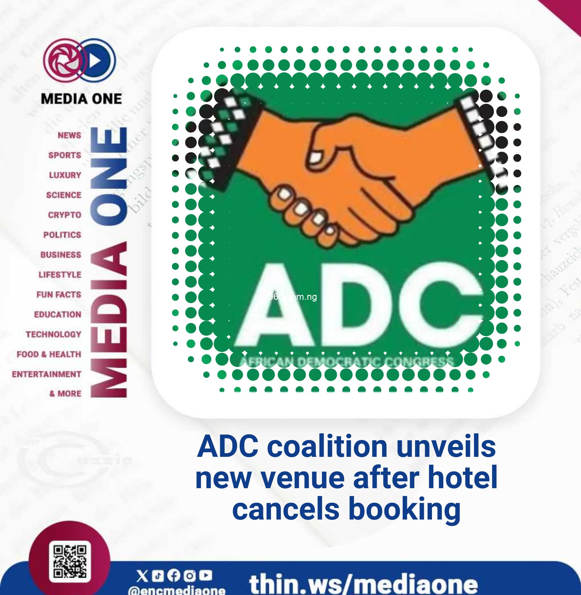 The African Democratic Congress (ADC) coalition has announced a new venue for the official unveiling of its political platform following a sudden cancellation of the event by an Abuja hotel.